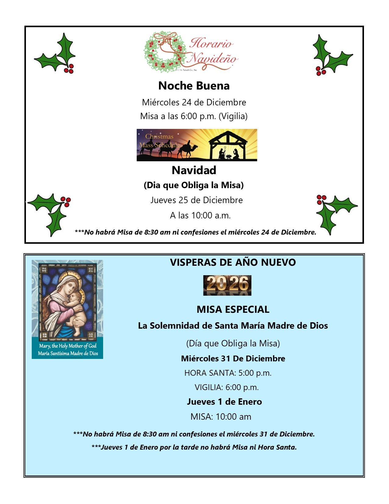 All Masses are in Spanish